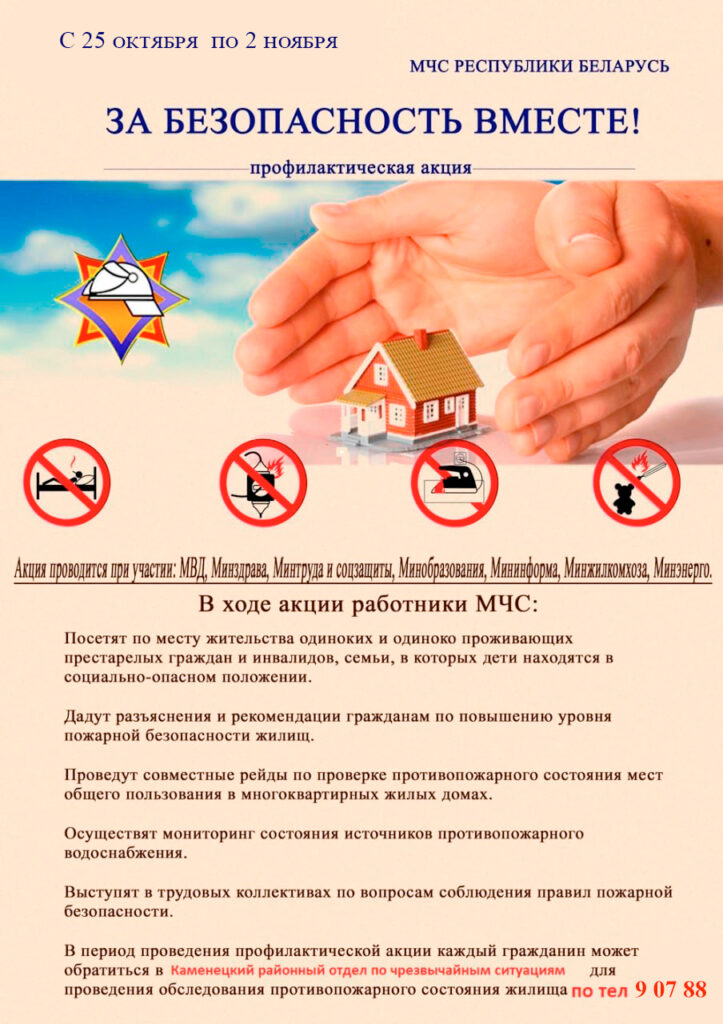 С 25 октября по 2 ноября 2025 года в Каменецком районе пройдет республиканская акция «За безопасность вместе».