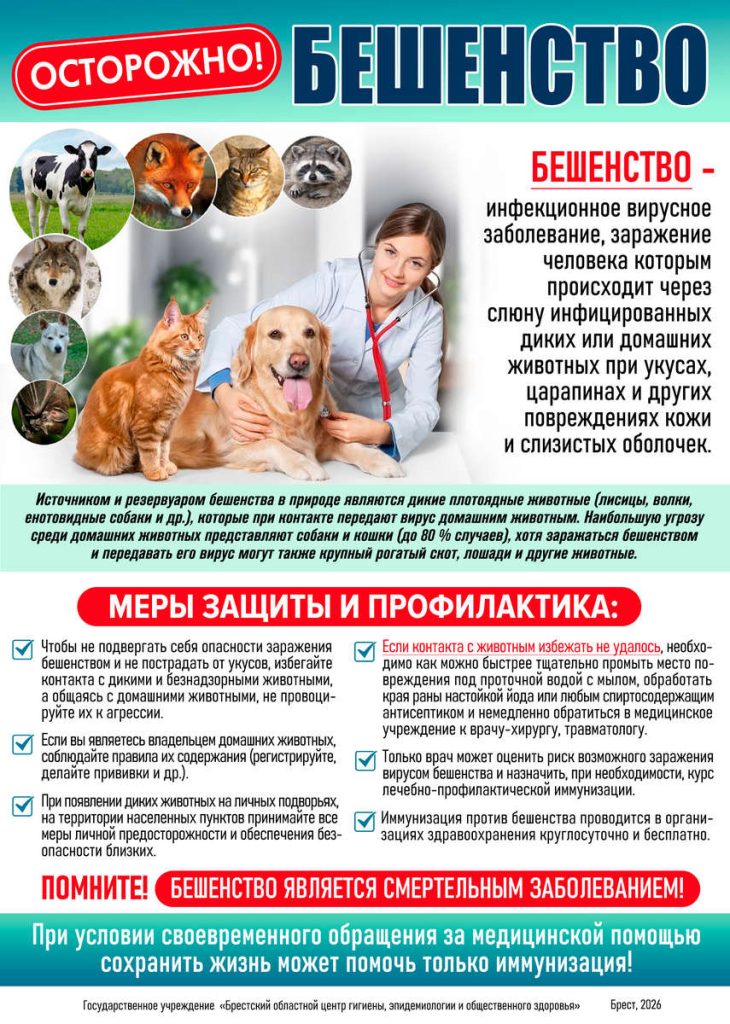 В Республике Беларусь ежегодно регистрируются случаи бешенства среди диких (лисы, енотовидные собаки, волки и др.), домашних (собаки, кошки) и сельскохозяйственных животных (крупный рогатый скот), поэтому существует риск возникновения случаев бешенства среди населения.