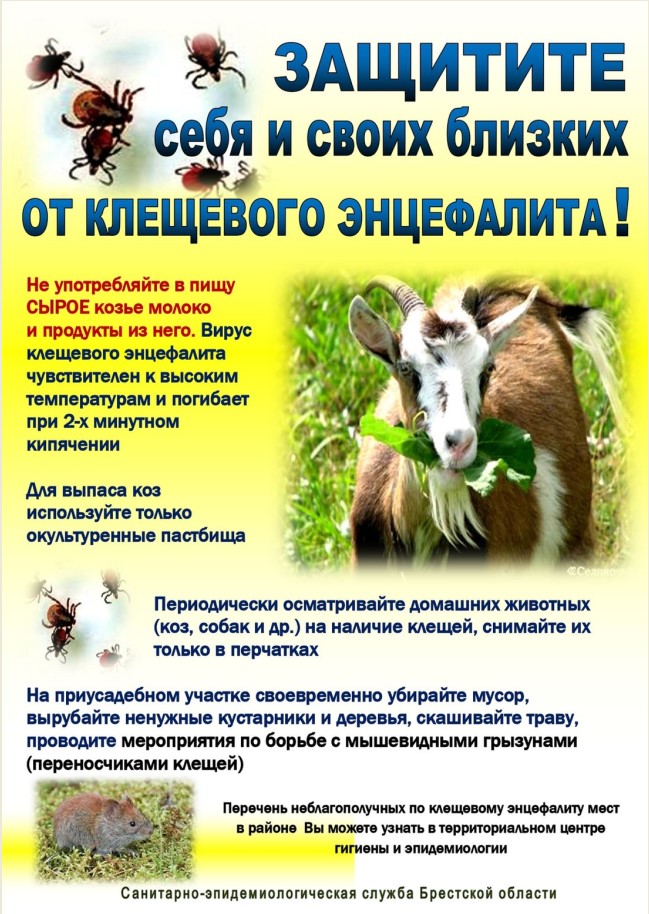 — чтобы обезопасить себя и своих близких от заражения клещевым энцефалитом с алиментарным путем заражения, козье молоко пить в кипяченом виде и для выпаса коз использовать только окультуренные пастбища;